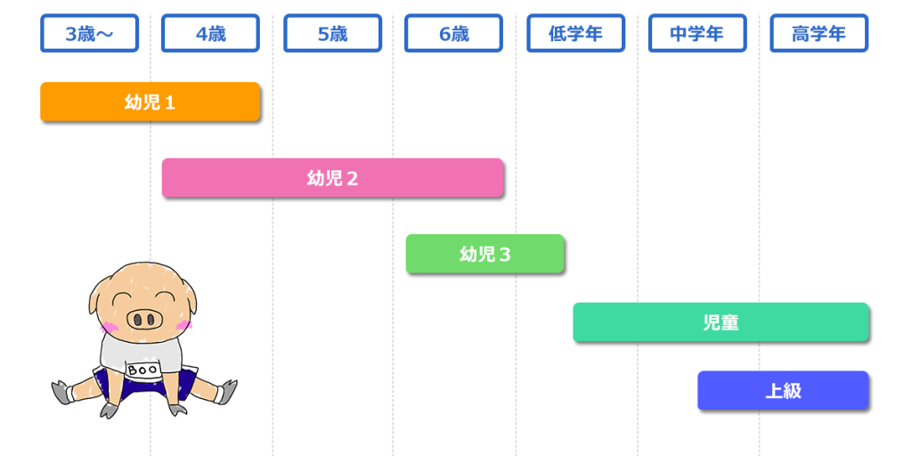 お子さまの上達度合いを確認できるように独自の進級制度を設け段階別に指導しています